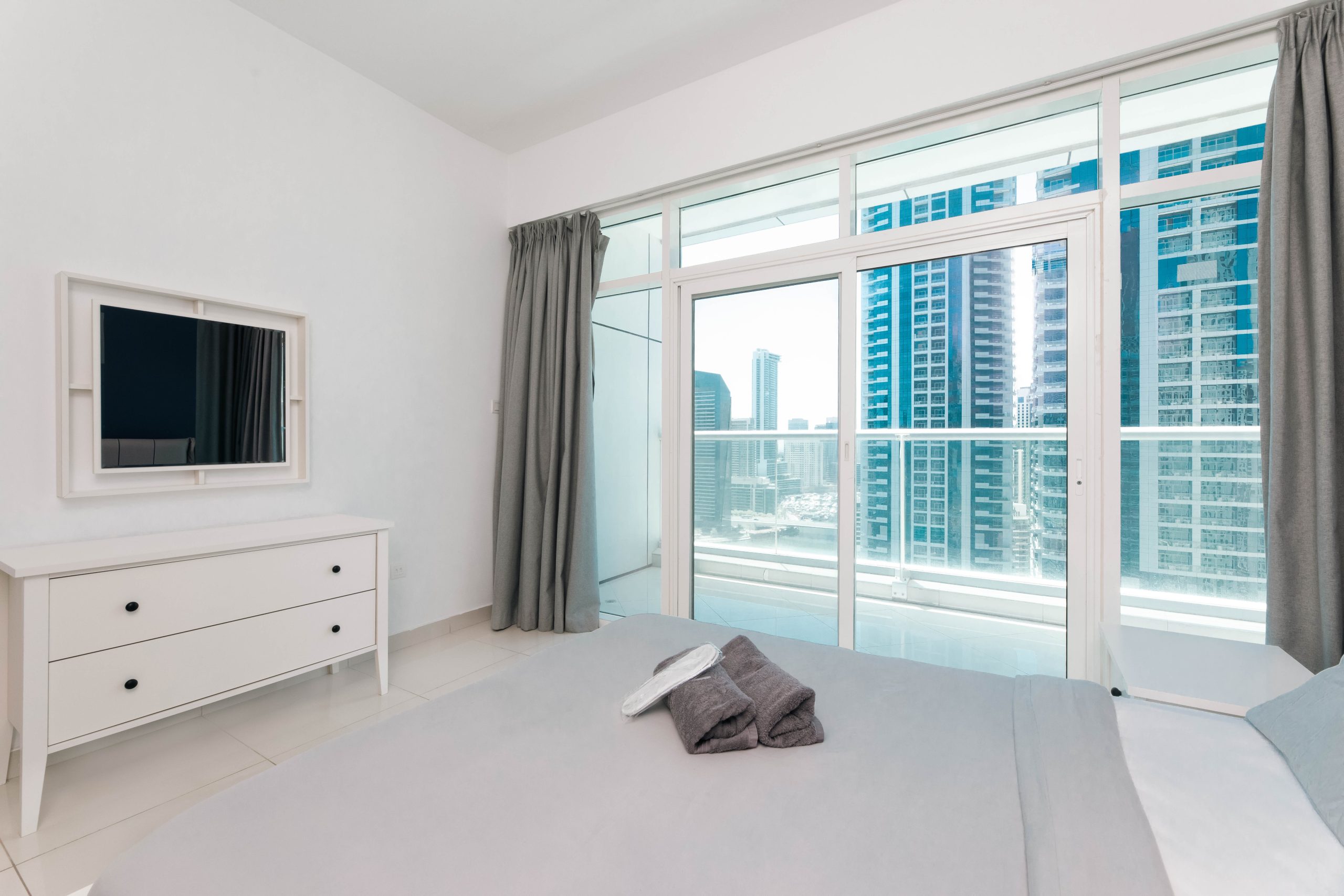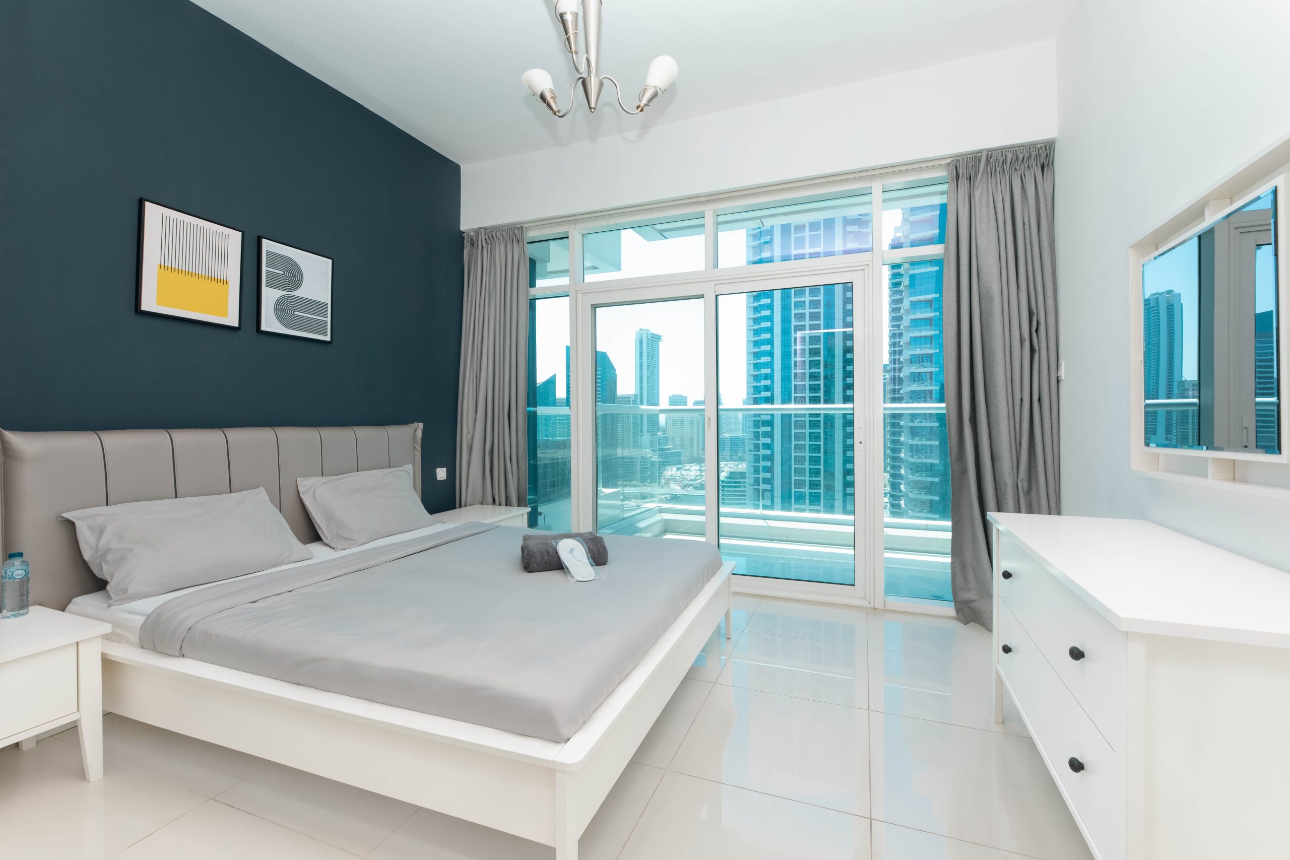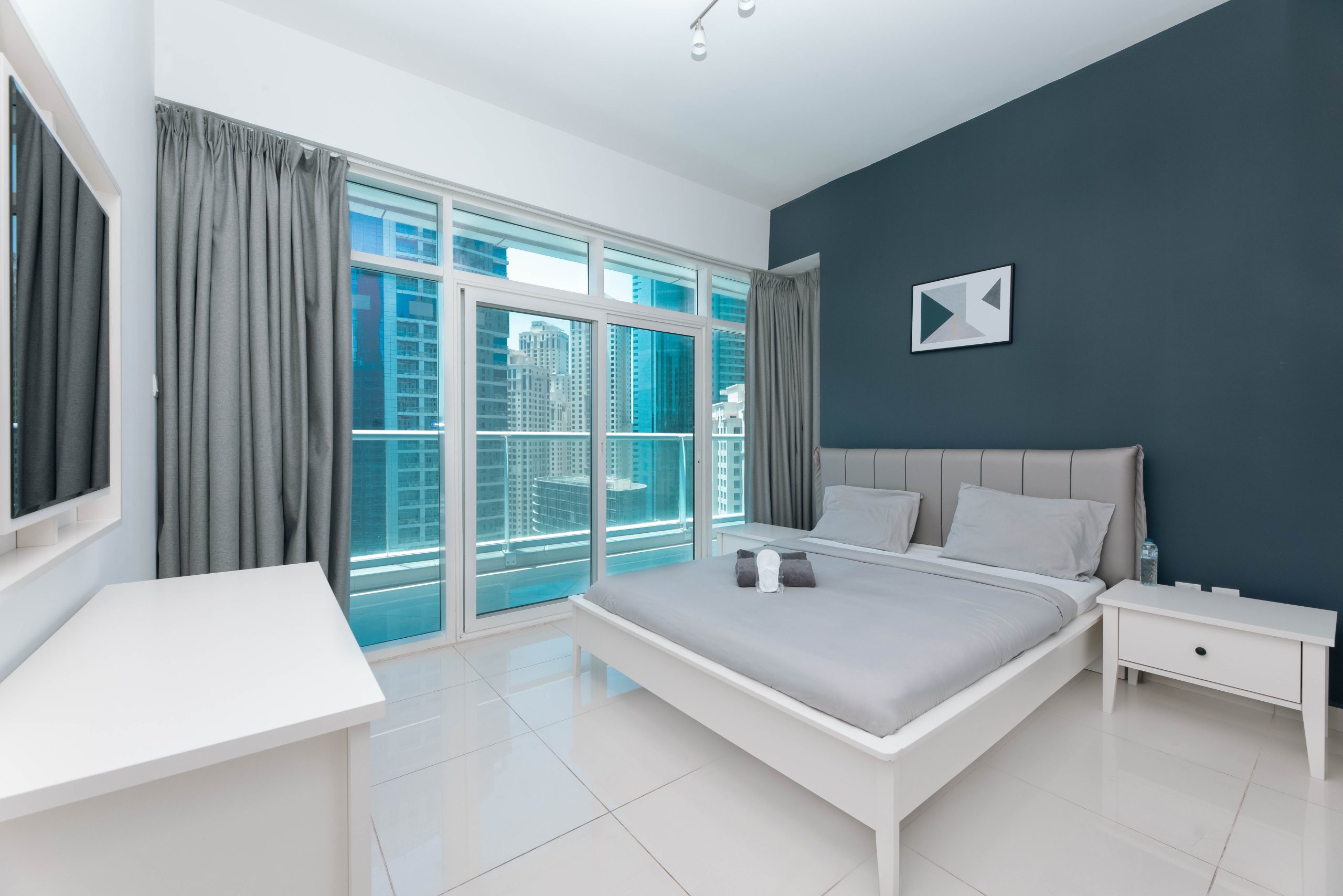 This is the heart of tourist Dubai – Dubai Marina. The apartments have an ideal location and are located 3 minutes walk from the beach, 1 minute from the tram stop, 5 minutes from the Marina Mall. Nothing better than waking up with this breathtaking view and walking around the Marina and the JBR.