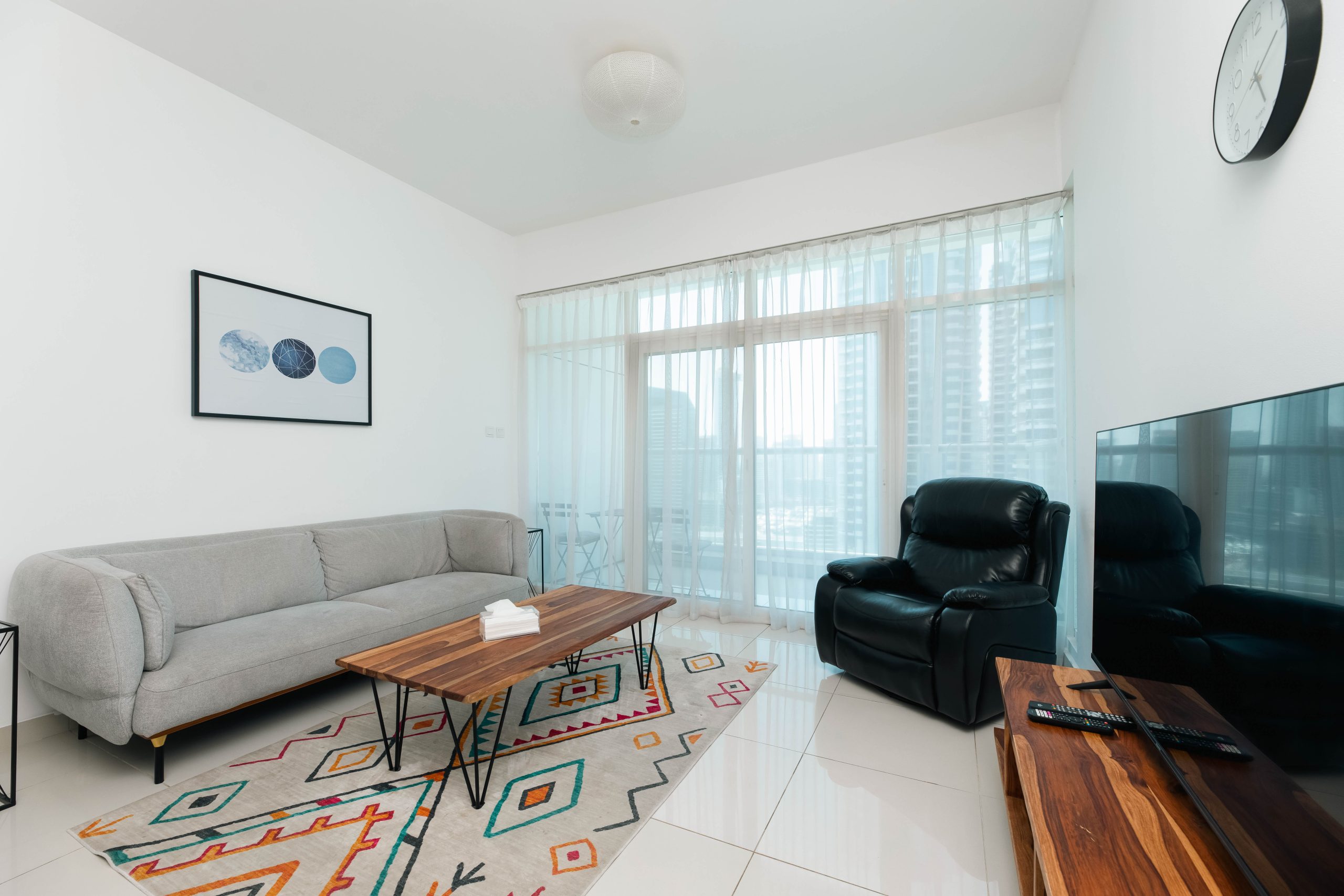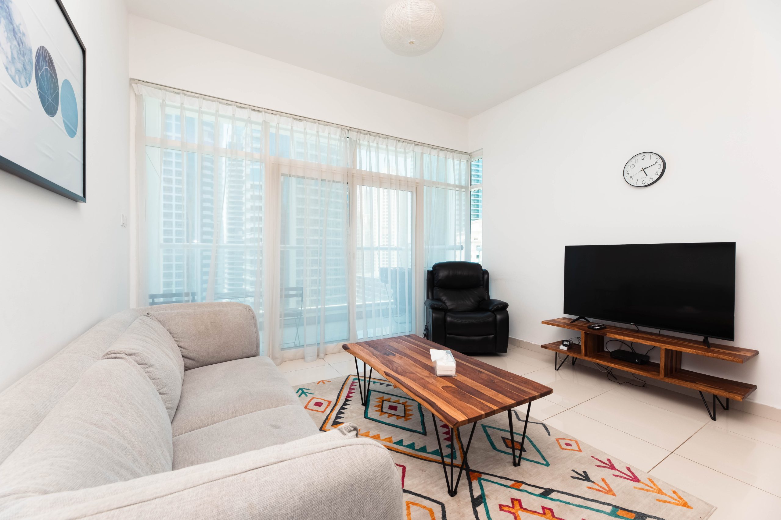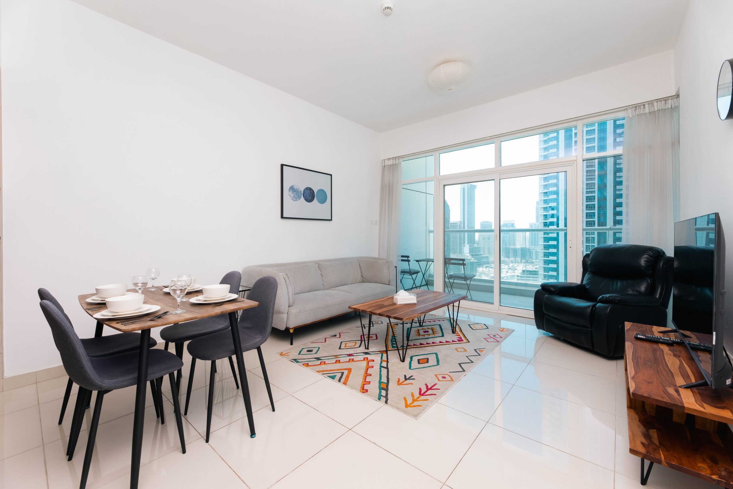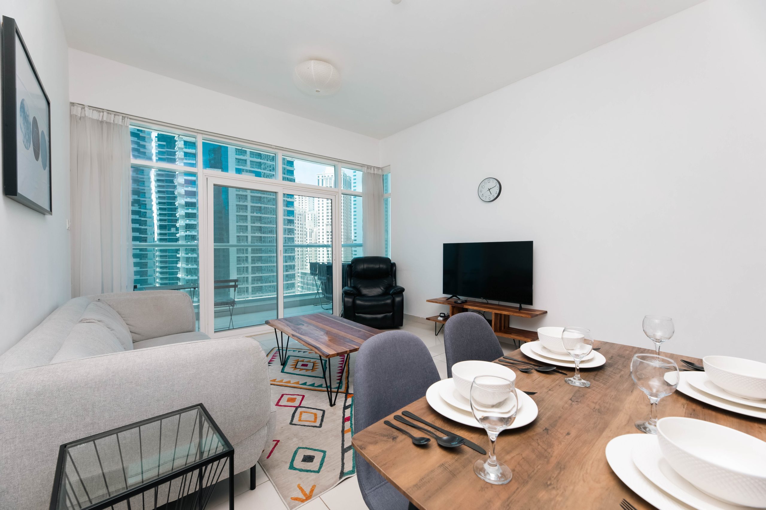 This is the heart of tourist Dubai – Dubai Marina. The apartments have an ideal location and are located 3 minutes walk from the beach, 1 minute from the tram stop, 5 minutes from the Marina Mall. Nothing better than waking up with this breathtaking view and walking around the Marina and the JBR.